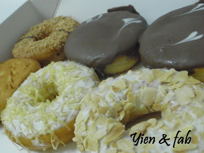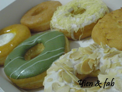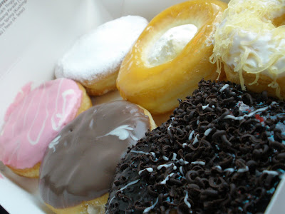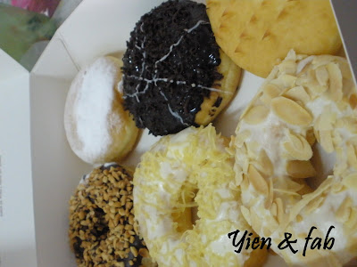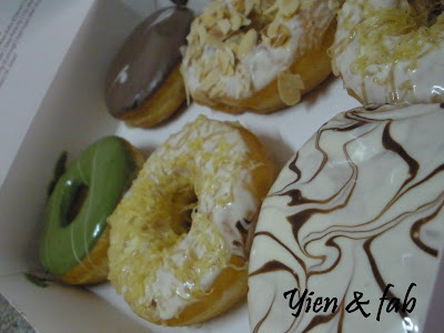 Here's some pictures of the donutss... which one you prefer the most??? Hmm.. u see.. ppl who noes me.. i don realli like chocolates.. so.. my favourite will be the California ALmond.. Say Cheese.. Green Tea one when it is serve COLD only.. Duren not bad oso for Durian lovers!!! *teehehehe* For chocolate loverss.... most ppl say The ALien and Chocochino is nice.. I have tired it and.. BOOM!! woohohoh!! Yummy!!! *just a bit SweeT*